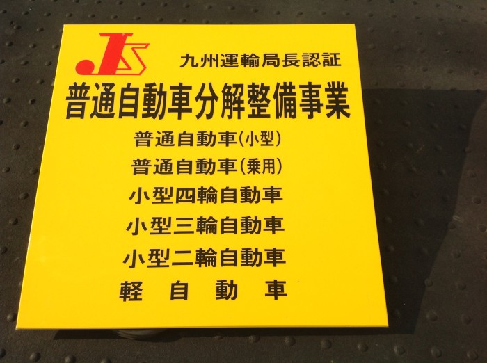 自動車整備事業を営業されてますリンクさまの依頼で九州運輸局長のオリジナル認定証を。(市販品が普通ですが)指定サイズと各文字の大きさサイズの指示通りで製作しました。仕上げはUVフィルムで完全ラッピングしました。超長期使用のプレートです。マークの赤はアクリル系樹脂のフィルムです。