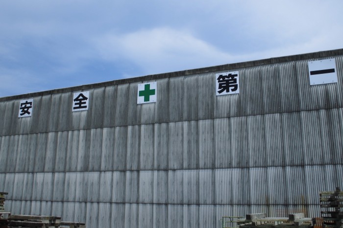 (株)ヤマウさまの川南工場壁面に安全第一の喚起サインが設置されました。工場内高所設置はヤマウさまのスタッフで行われました。近年ヤマウさまの工場では安全喚起のスローガン等の工場内安全環境看板製作ででお世話になってます。安全第一を掲げてスタッフ一丸となって安全確認作業を重視されてる事業所です。