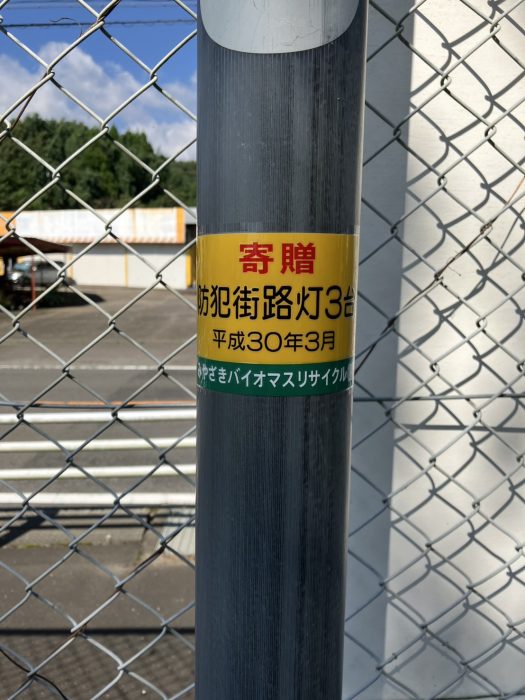 みやざきバイオマスリサイクル株式会社さまの寄贈ステッカーです。寄贈された町内防犯街路灯各10本に貼り施工させていただきました。